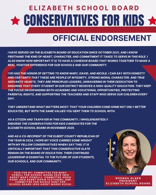 Endorsements No monies were paid for endorsements. Statements posted are based on campaign finance guidance provided by SOS office. Website paid for by Rhonda Olsen